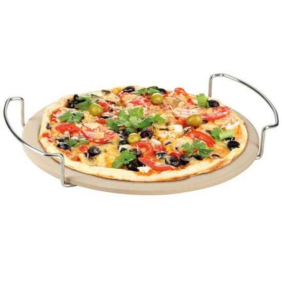 Der Pizzastein ist aus massivem Cordierit-Stein gefertigt – für optimale Wärme- und Feuchtigkeitsspeicherung! Der Pizzastein mit extra-großem Durchmesser sorgt für einen super knusprigen Pizzaboden, wie bei Ihrem Lieblings-Italiener! Der Pizzastein mit Rahmen ist für Gas- und Holzkohlegrills geeignet.