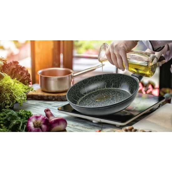 Die Struktur der „aufgebrochenen“ Oberfläche verbessert zusätzlich die Antihaft-Performance und hebt Kochen auf eine neue Stufe.
