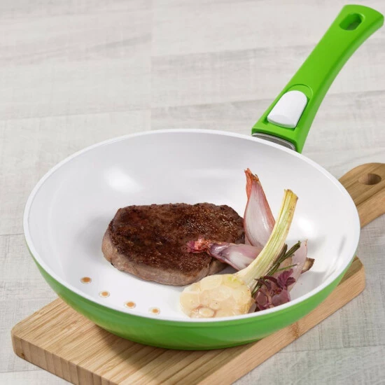 Dank der Cerafit Keramik-Beschichtung ist Braten nahezu ohne Fett und Öl möglich – Sie können sich ganz einfach bewusster und gesünder ernähren. Die Keramik-Beschichtung ist extrem hitzebeständig, so dass Sie in der Pfanne sogar flambieren können. Nichts bleibt haften und die Reinigung ist problemlos. Einfach auswischen – fertig!
