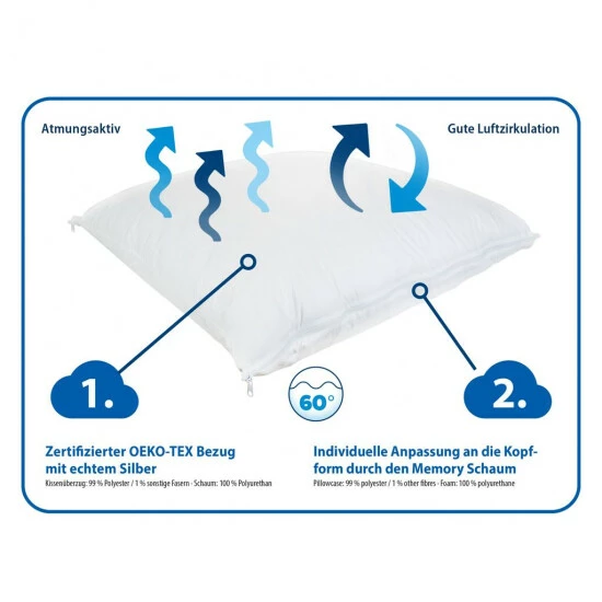- Kein Verklumpen des Kissens beim Waschen, dank 100% Polyesterfüllung