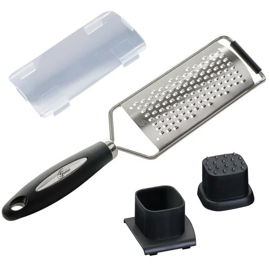Die Edelstahlreibe ist ideal, um Speisen direkt am Esstisch zu verfeinern. Die Genius Reibe ist ideal zum Reiben von Gewürzen, Zitrusschalen, Nüssen, Mandeln, Schokolade sowie Zwiebeln und Knoblauch!