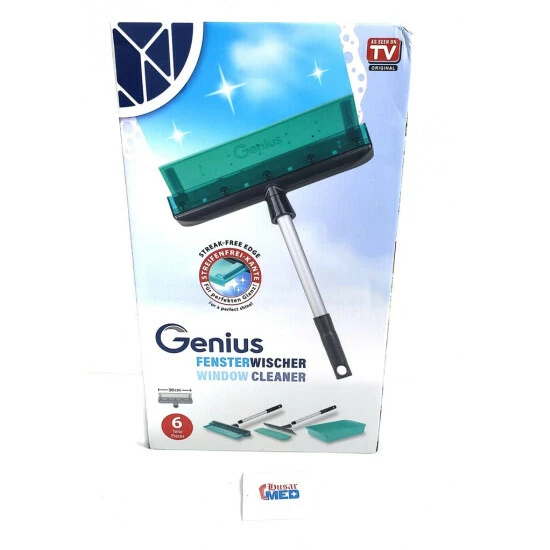 Der Genius Fensterwischer reinigt jedes Fenster streifen- und schmutzwasserfrei. Der Genius Fensterwischer erleichtert, verkürzt und perfektioniert die Reinigung jeder Fensterscheibe enorm und macht dabei Spaß in der Anwendung. Schnelle und streifenfreie Fensterreinigung, das Schmutzwasser wird direkt im integrierten Tank des kleinen Wischers aufgefangen und kann sauber entsorgt werden. Keine Streifenbildung dank neu entwickelter Wischblätter aus extra weichem Silikon, passgenaues Design der Wischblätter für rückstandsloses Arbeiten. Ganzflächiger, gebogener und ergonomischer Fenstermopp mit waschbarem, Wischtuch. 2 in 1 Wanne für Lagerung und Reinigung, zudem 2 seitliche Ausdrückränder sowie Griffe für eine leichte Handhabung der Wanne. Lieferumfang: Fenstermopp, Stab (2x), Wischtuch, Wanne, integrierter Tank Eigenschaften: Aluminium, Kunststoff Intergrierter Tank waschbares Wischtuch inkl. 2 in 1 Wanne ganzflächiger, ergonomischer, gebogener Fenstermopp