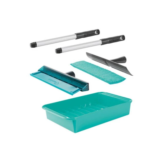 - Lieferumfang Das Fensterputzer-Set enthält: 1x Großer Fensterwischer 30 cm breit, 2x Handgriff, 1x Vorwischer, 1x Mikrofaserbezug, 1x Wanne
