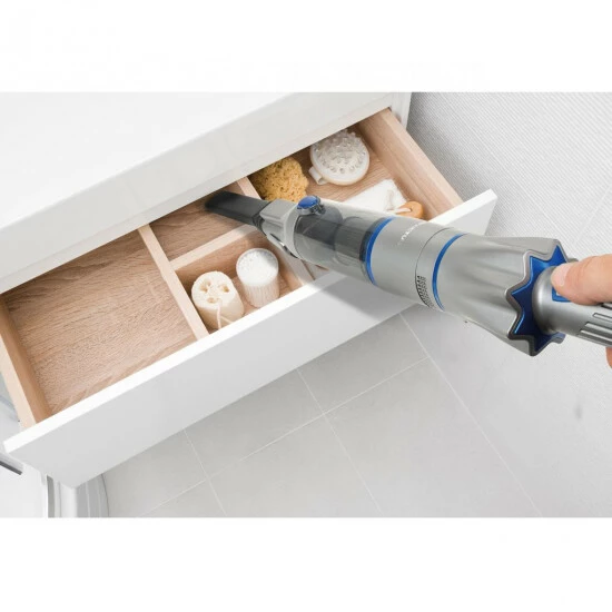Mit 3-facher Saugkraft, bietet der kabellose Handstaubsauger eine noch gründlichere Reinigung und erweitert nochmals die möglichen Einsatzgebiete. In Kombination mit einer verlängerten Akkulaufzeit von bis zu 20 Minuten können alle gewünschten Oberflächen, Möbel, Polster, Nischen, Ecken und Zwischenräume mühelos tiefengereinigt werden!