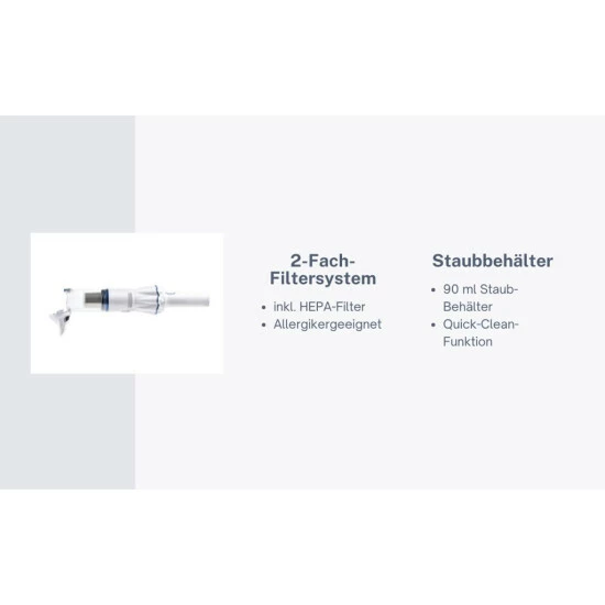 - Effektive Filtration: Durch das 2-fach-Filtersystem inkl. HEPA-Filter