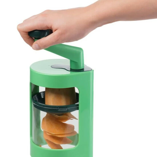 Die extra scharfen Klingen aus rostfreiem Stahl ermöglichen es, große Mengen Obst und Gemüse mit dem Allesschneider in kurzer Zeit problemlos in die gewünschte Form zu schneiden. Sei es Kartoffeln, Rote Beete und Zucchini oder auch die kleinsten Zutaten wie Radieschen- alles wird von diesem Lebensmittelschneider perfekt geschnitten und im Behälter aufgefangen. Sie können die Schneideinsätze einfach wechseln, um unterschiedliche Ergebnisse zu erhalten.