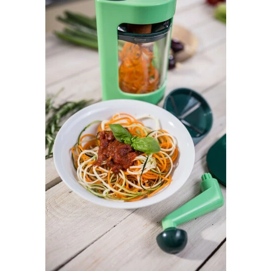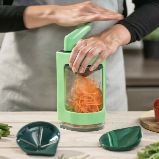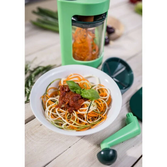 Dieser Multi-Slicer Super Julietti von Genius hobelt Ihr Gemüse in Spaghetti-Form und schneidet ebenfalls feine Streifen aus den Zutaten, für einen frischen Salat, gekochte Gerichte oder rohes Gemüse!