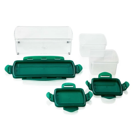 Zutaten direkt sauber in den Behälter schneiden ist komfortabel, aber oft wird eine große Auswahl an Zutaten benötigt und es sind nicht genug Behälter zur Hand. Das ist nun vorbei, denn mit diesem Set haben Sie mehr Behälter für mehr Flexibilität! Zusätzlicher Clou: Die kleinen Behälter können in die großen eingesetzt werden – für direktes Trennen der Zutaten in einem Schneid-Vorgang. Leichter, schneller und komfortabler geht es nicht. Selbstverständlich können alle Behälter mit den genialen Frischhaltedeckeln verschlossen werden zum sicheren Transportieren, Aufbewahren und Frischhalten – jetzt vorbereiten, später verwenden.