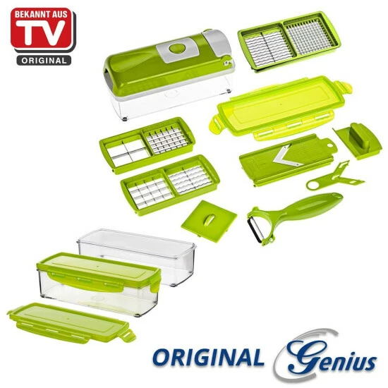 Einfacher, praktischer und platzsparender geht es wirklich nicht! Der Nicer Dicer smart ist ein geniales System zur Zubereitung von Salaten, Obst- und Gemüsegerichten u.v.m. – mühelos, schnell und völlig ohne Strom.