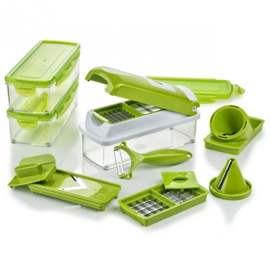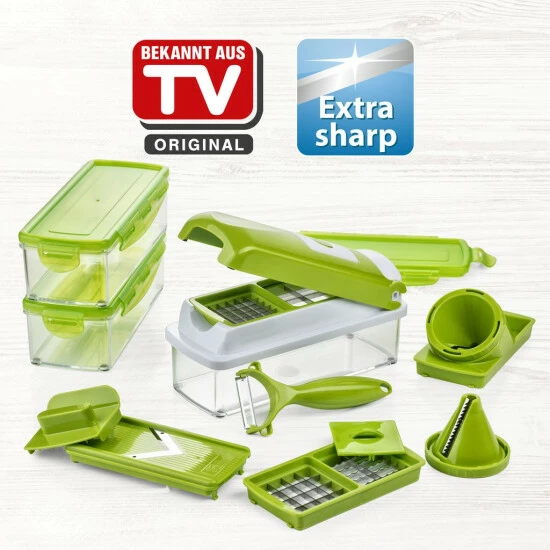 Einfacher, praktischer und platzsparender geht es wirklich nicht! Der Nicer Dicer smart ist ein geniales System zur Zubereitung von Salaten, Obst- und Gemüsegerichten u.v.m. – mühelos, schnell und völlig ohne Strom.