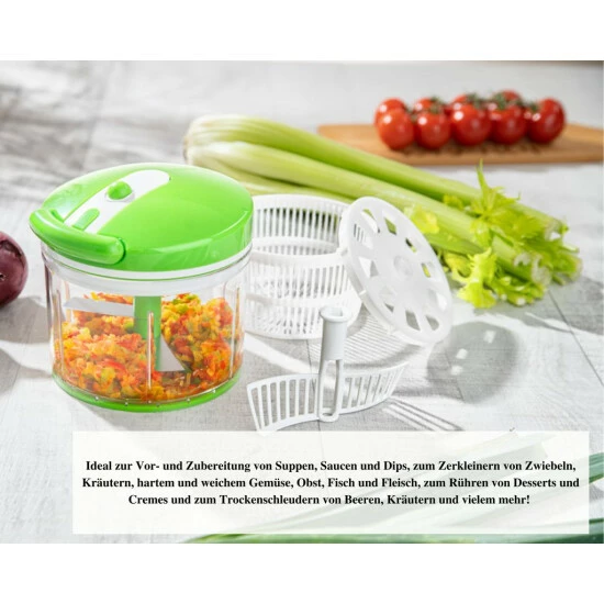 - Ideal zur Vor- und Zubereitung von Suppen, Saucen und Dips, zum Zerkleinern von Zwiebeln, Kräutern, hartem und weichem Gemüse, Obst, Fisch und Fleisch, zum Rühren von Desserts und Cremes und zum Trockenschleudern von Beeren, Kräutern und vielem mehr!