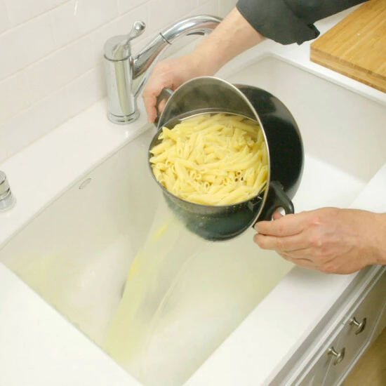 Der World’s Greatest Pot ist ein Kochtopf mit integriertem Sieb. Mit diesem Topf können Sie ganz bequem Nudeln kochen, Wasser abgießen, Speisen dampfgaren und vieles mehr – alles in einem praktischen Kochtopf mit Antihaft-Beschichtung. Perfekt für Nudeln, Kartoffeln, Mais, Eier, Gemüse uvm. Einfach Pasta kochen, wenn diese gar sind, den Topf an den Griffen festhalten, auf den Kopf drehen und das Kochwasser abfließen lassen. Dank des integrierten Siebs können Sie auch problemlos Gemüse dämpfen ohne Vitaminverlust – für eine bewusste und gesündere Ernährung.